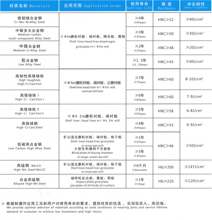 锤头类材质及性能